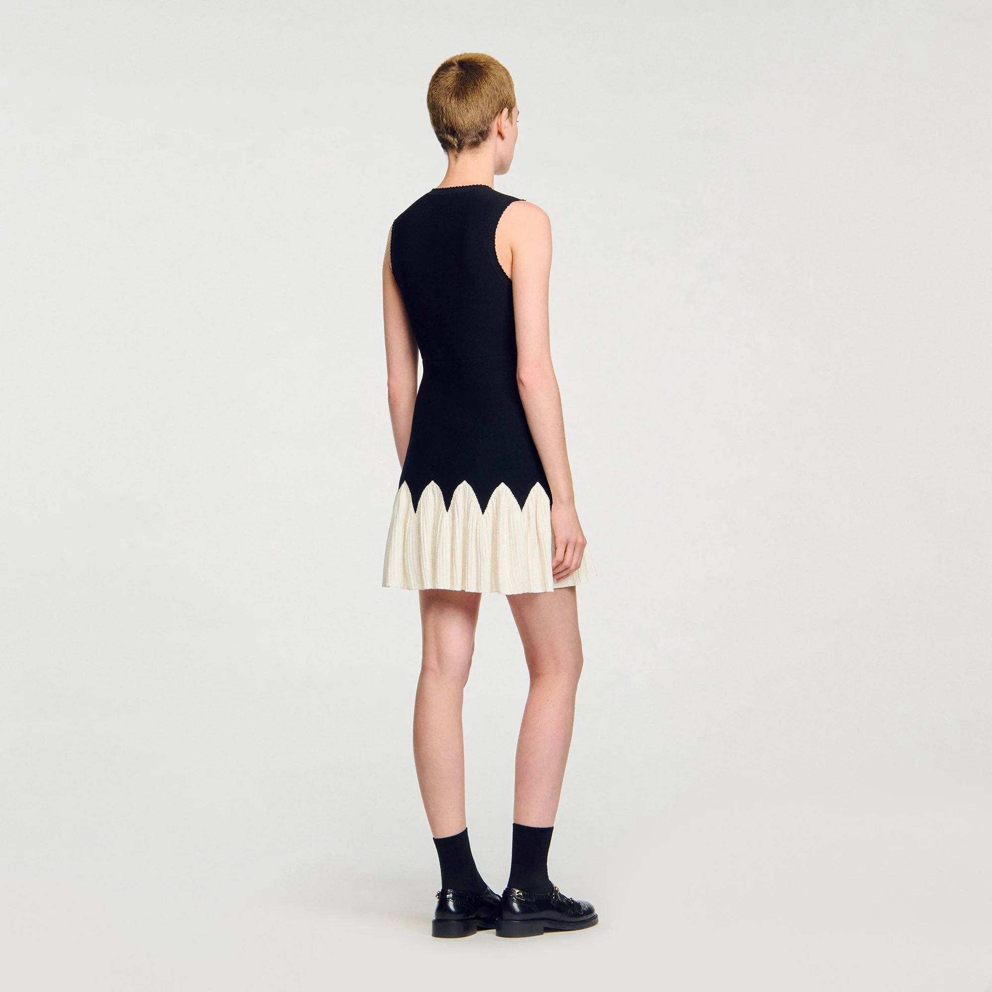 -70%Cassie Two-Tone Short Knit Dress Black / Ecruā